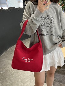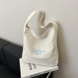 韩国百搭布包女2025新款休闲字母大容量单肩斜挎包托特包简约女包