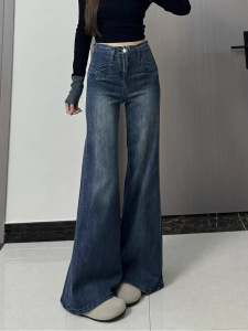 大码微喇叭牛仔裤女2025春夏胖mm梨形身材宽松显瘦高腰直筒阔腿裤
