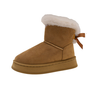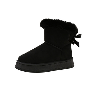 外贸跨境雪地靴女毛口蝴蝶结装饰简约休闲女士雪地靴厚底短筒棉靴