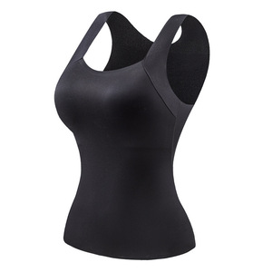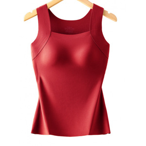 无痕自发热方领保暖背心内搭带胸垫女士抗菌润肤秋冬新款打底上衣