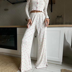 秋季新款睡衣女长袖长裤针织印花舒适欧美2025跨境开衫女士家居服