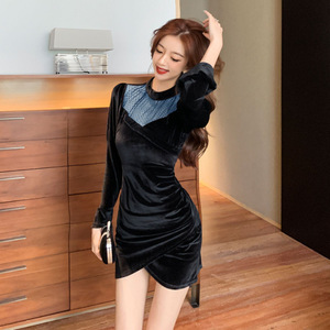 法式气质小黑裙赫本风丝绒秋冬绝美时尚修身包臀打底小礼服连衣裙