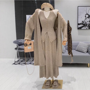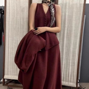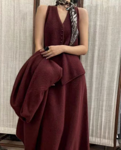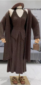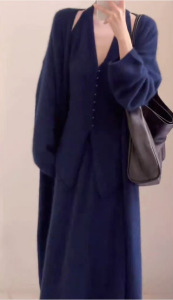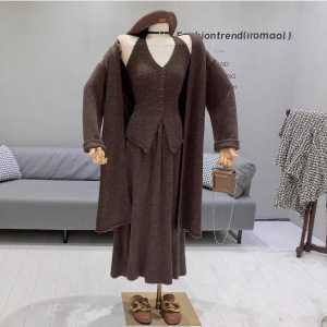 PH082大爱美依缘2025秋冬新款慵懒风宽松毛衣外套背心半身裙三件