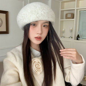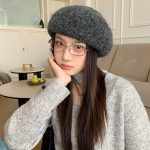 羊驼毛经典版型贝雷帽秋冬灰色米色显脸小蓓蕾帽洋气保暖画家帽