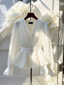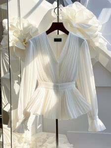 气质垂感V领长袖上衣轻熟法式独特漂亮小衫轻奢高级感白色衬衫秋