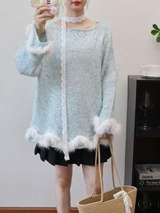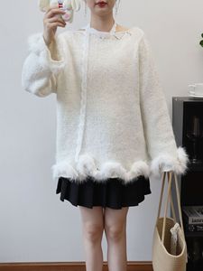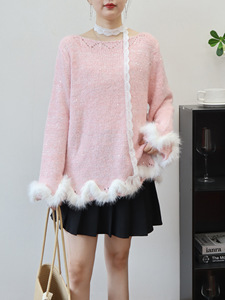 2025秋冬新款毛毛拼接亮片针织衫上衣韩版宽松慵懒风毛衣套头女潮