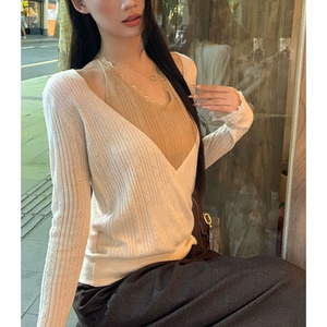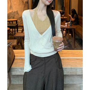 针织衫女韩系早秋穿搭上衣假两件氛围感设计感辣妹修身毛衣2025新