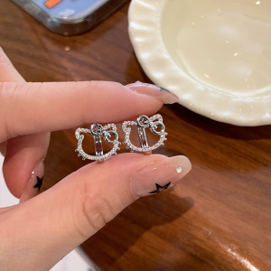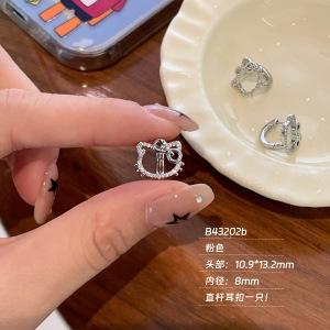 可爱KT猫头耳扣女精致甜酷猫咪耳饰耳圈钛钢直杆耳扣