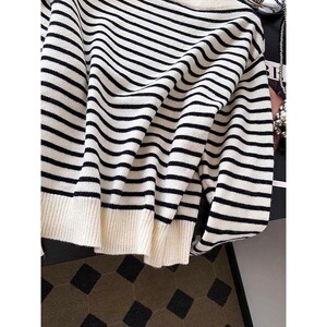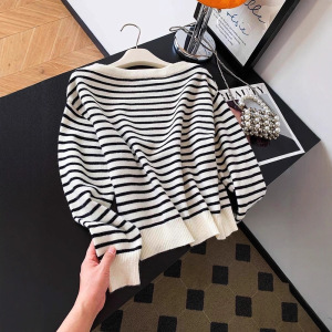 韩系撞色条纹一字肩毛衣女2025早秋季新款高级感宽松显瘦针织上衣