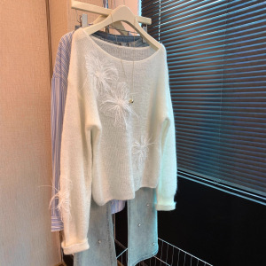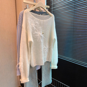 广州十三行高货爆款~法式重工钉珠花朵甜美纯欲针织衫女早秋毛衣