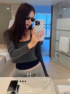 SUNONEONE 方领显瘦短款针织衫女秋季新款套头长袖修身上衣
