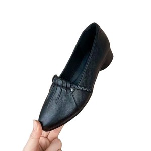 2025女鞋浅口新款夏季百搭透气尖头单鞋软底皮鞋妈妈鞋爆款低跟鞋
