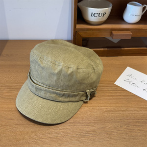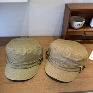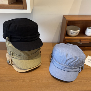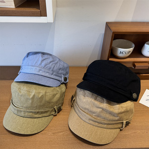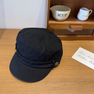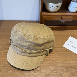 美式复古平顶马术帽女做旧水洗贝雷帽文艺百搭显脸小鸭舌帽子潮