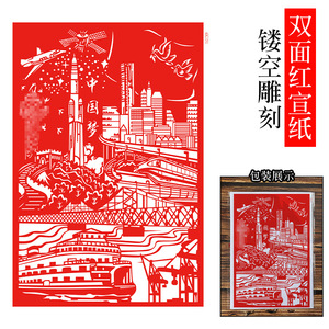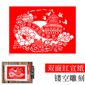 国庆爱国主题剪纸成品红色剪纸作品非遗手工刻画图案中国风刻纸画