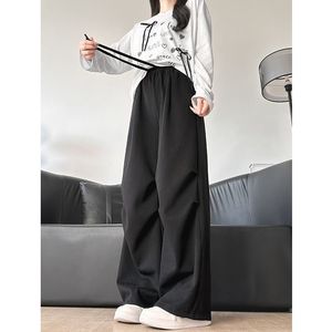 白灰色运动裤女春秋款2025新款伞兵卫裤工装裤直筒宽松显瘦阔腿裤