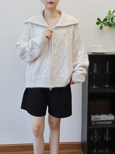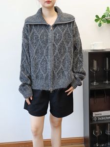 2025秋冬新款双拉链亮片高级感针织开衫宽松休闲百搭毛衣外套女潮