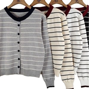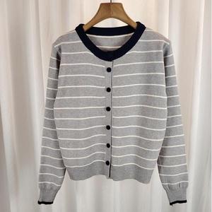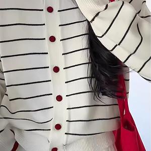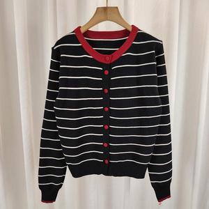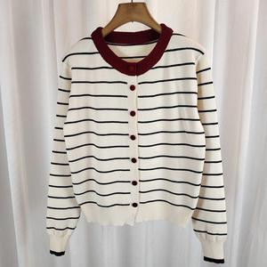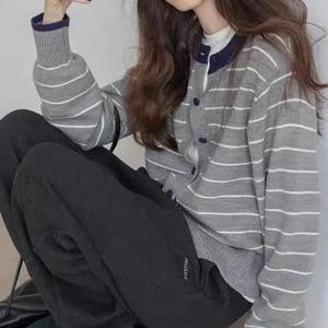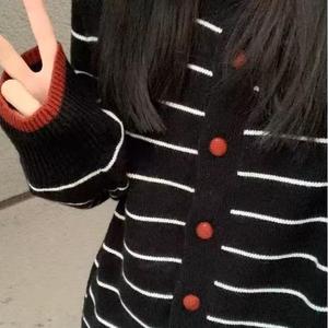 韩系撞色条纹针织衫女2025秋气质休闲高级感长袖开衫软糯百搭外套