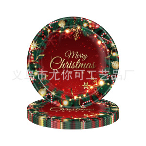 新款红绿圣诞狂欢主题派对用品一次性纸桌布纸盘餐具套装生日聚会