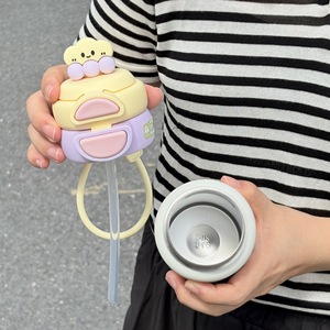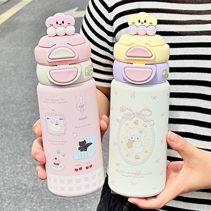 可爱保温杯女新款一盖双饮口水杯男学生上学专用水壶儿童吸管杯子