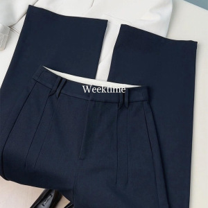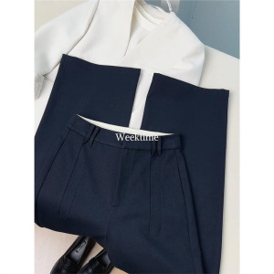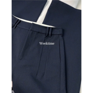 CHAO级!令人着迷~神秘蓝高级感精纺羊毛裤子直筒百搭时髦西裤女