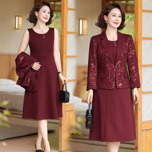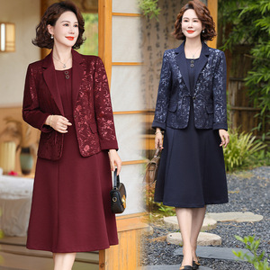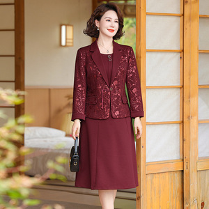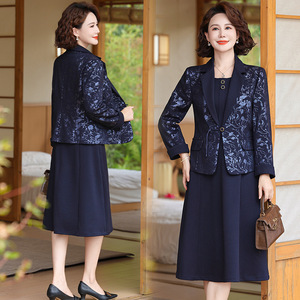 妈妈西装外套2025新款洋气50多岁中年女春秋冬装两件套装连衣裙子