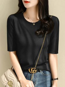 新款套头圆领简约内搭上衣显瘦法式时尚早秋季中袖气质女装针织衫