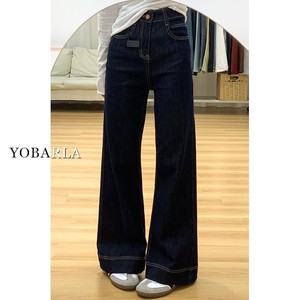 深蓝色a版阔腿牛仔裤女秋季新款胖mm大码显瘦梨形身材宽松微喇裤