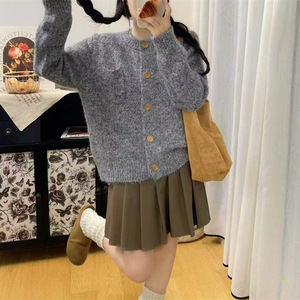 温柔风高级感复古纯色毛衣开衫女秋冬外穿软糯宽松慵懒风针织外套