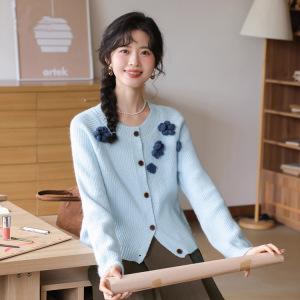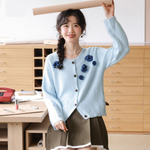 独特别致花朵刺绣减龄毛衣外套设计感单排扣针织开衫洋气长袖上衣
