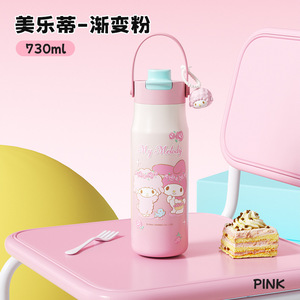 三丽鸥316不锈钢渐变保温杯自带提手方便携带直饮设计大容量饮水