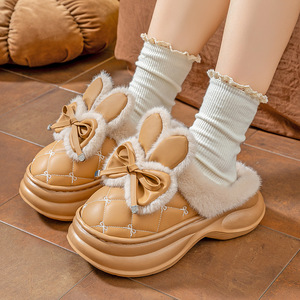 厚底增高棉拖鞋女新款家居时尚PU皮拖鞋冬季毛绒保暖防滑外穿百搭