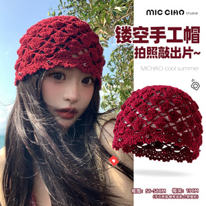 日系手工帽子堆堆薄款新款编织镂空复古针织文艺包头毛线帽帽女