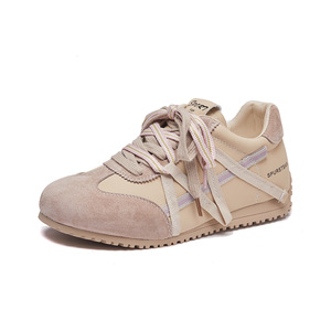 真皮网面透气德训鞋女2025夏季新款复古粉色软底软面跑步阿甘网鞋
