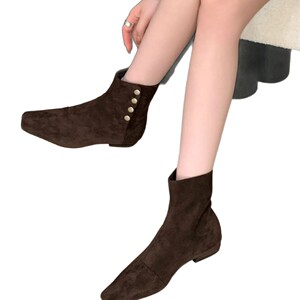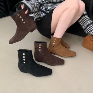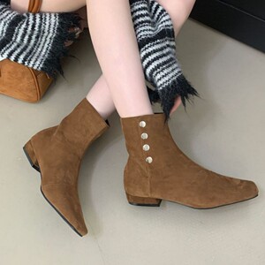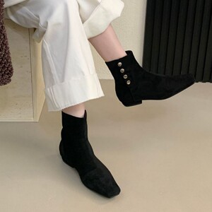 2025秋冬新款纽扣两穿慵懒复古内增高百搭马丁靴绒面方头百搭短靴
