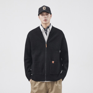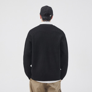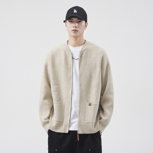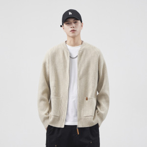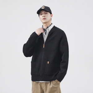 高端美式棒球领休闲毛衣外套男士针织开衫秋冬加厚外穿毛线衣男装