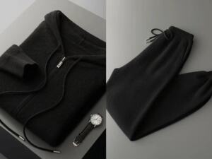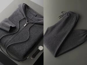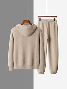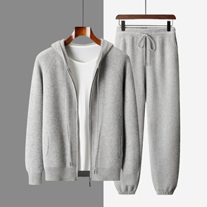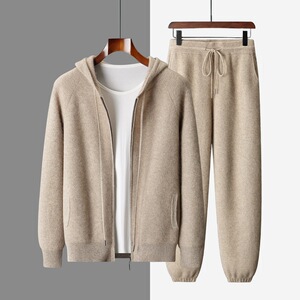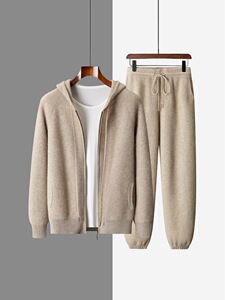 2025秋冬新款羊绒衫男士连帽开衫收口裤子休闲针织套装厂家直销