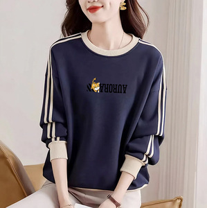 品牌出口剪标纯棉国风印花长袖卫衣女春秋款休闲显瘦文艺上衣