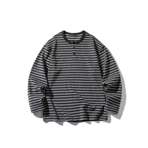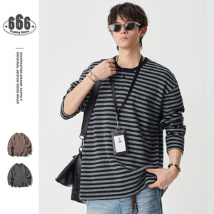 FLYCLAN美式潮牌复古条纹百搭宽松长袖T恤男士圆领套头卫衣Q8906