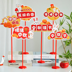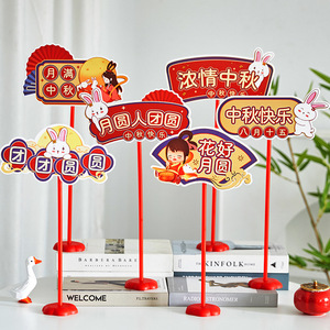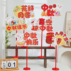 2025中秋国庆桌面摆件商场店铺柜台氛围装饰品手举牌拍照场景布置