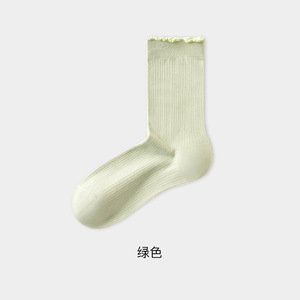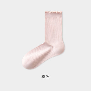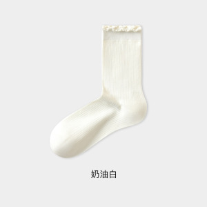 纯棉袜子女秋款透气白色中筒堆堆袜防臭吸汗花边无骨月子袜棉袜