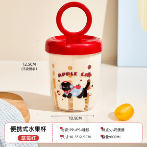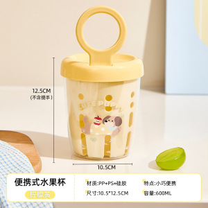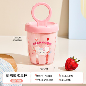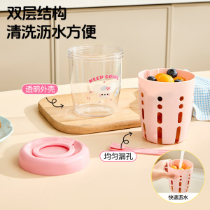 马卡龙水果杯早餐沙拉杯便携外带野餐带叉子带盖双层沥水杯水果杯