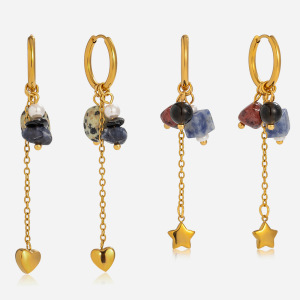 静俏设计感复古风彩色天然石五角星爱心流苏耳环不锈钢耳饰女跨境