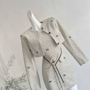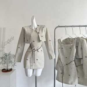 秋上新晚宴名流 小香风名媛设计修身显瘦吊带连衣裙女秋外套