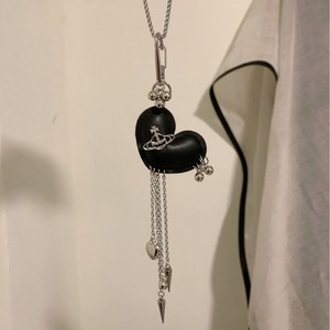 韩国ins风黑色爱心土星挂坠项链女小众高级感气质锁骨链长款服饰