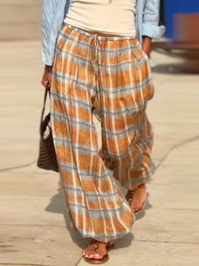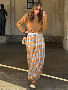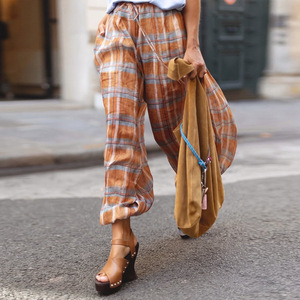 42077PBG跨境专供2025秋季新品时尚低腰绑带格子欧美宽松休闲裤女