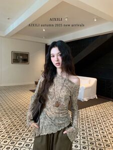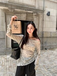 原版优质面料 2025秋季新款气质高级感不规则露肩晕染花朵上衣女