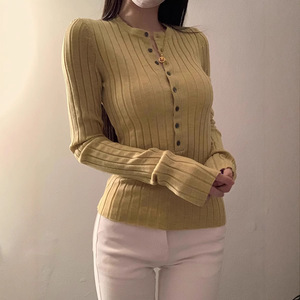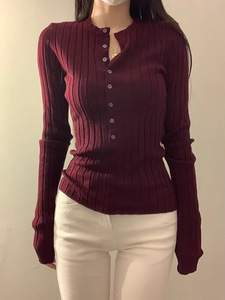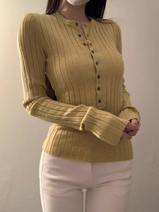 韩版气质半开领排扣针织衫女秋冬新款软糯修身显瘦内搭打底衫上衣