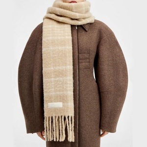 JACQUEMUS格纹羊驼毛流苏围巾高级感冬季马海毛保暖披肩男女同款