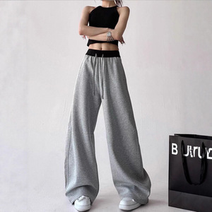 2025秋高级感拼色抽绳运动裤女宽松显瘦弯刀裤卫裤休闲遮肉阔腿裤