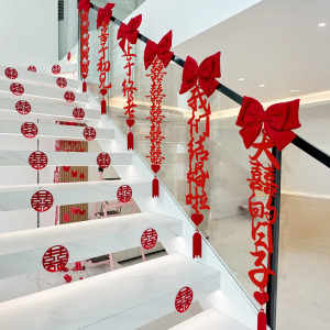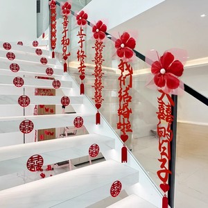 楼梯扶手装饰纱幔高级感男女方结婚婚礼布置农村自建房庭院子婚房